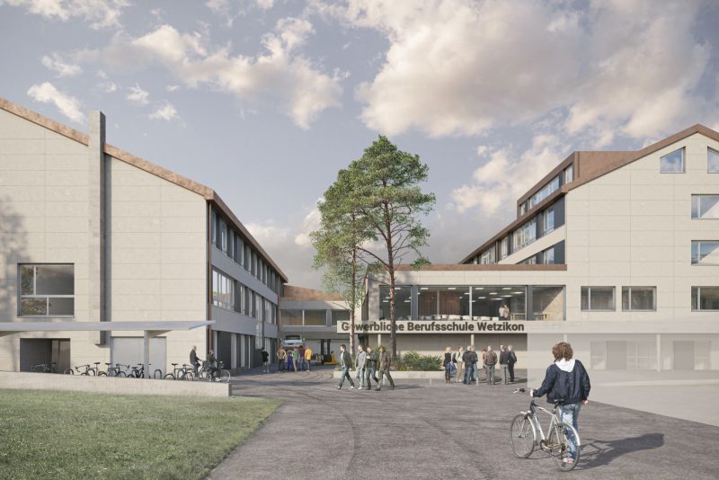 Die stetig wachsende Zahl von Lernenden, bringt die Schulkapazität an ihre grenzen. Die mehrfach erweiterte Gewerbliche Berufsschule mit den Stammbauten der Architekten Hertig Hertig Schoch Architekten aus den Jahren 1961 und 1968 soll instand gesetzt und an neue Nutzerbedürfnisse angepasst werden. Die Schule wird zum offenen Lernort und es entsteht, im Geist der ursprünglichen Anlage, eine Wechselwirkung zwischen Innen- und Aussenraum. Der Umbau unter laufendem Betrieb wird sich auf mehrer Jahre erstrecken. Zu dem Zweck wir der Schulstandort des Stammhauses an der Gewerbeschulstrasse 10 für zwei Jahre an die Schellerstrasse verlegt.